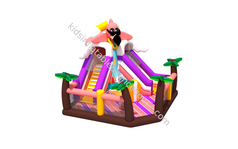 Nouveau thème de la plage Flamingo Colorier gonflable amusant Ville de noix de coco Palmiers gonflable rebondir avec diapositive gonflable commercial