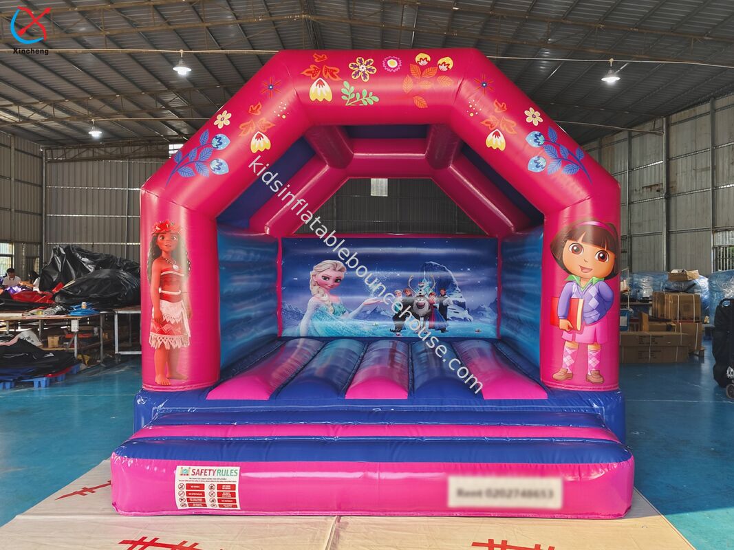 Maison gonflable de qualité professionnelle sur le thème de la princesse rose, conçue spécifiquement pour un usage commercial et le divertissement des enfants.