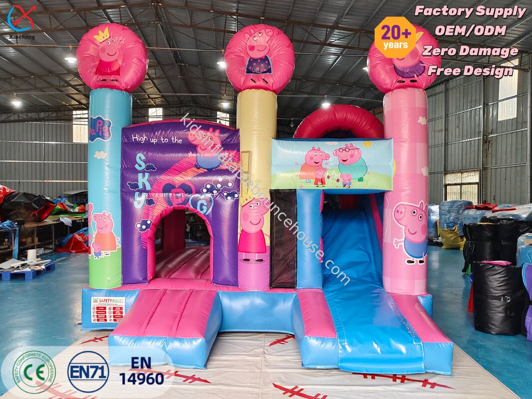 Cette maison gonflable sur le thème de Peppa Pig présente des graphismes vibrants et une diapositive amusante, créant une expérience de jeu immersive pour les enfants.La construction robuste assure le bonheur de saut en toute sécurité et de glissement lors de fêtes et d'événements.