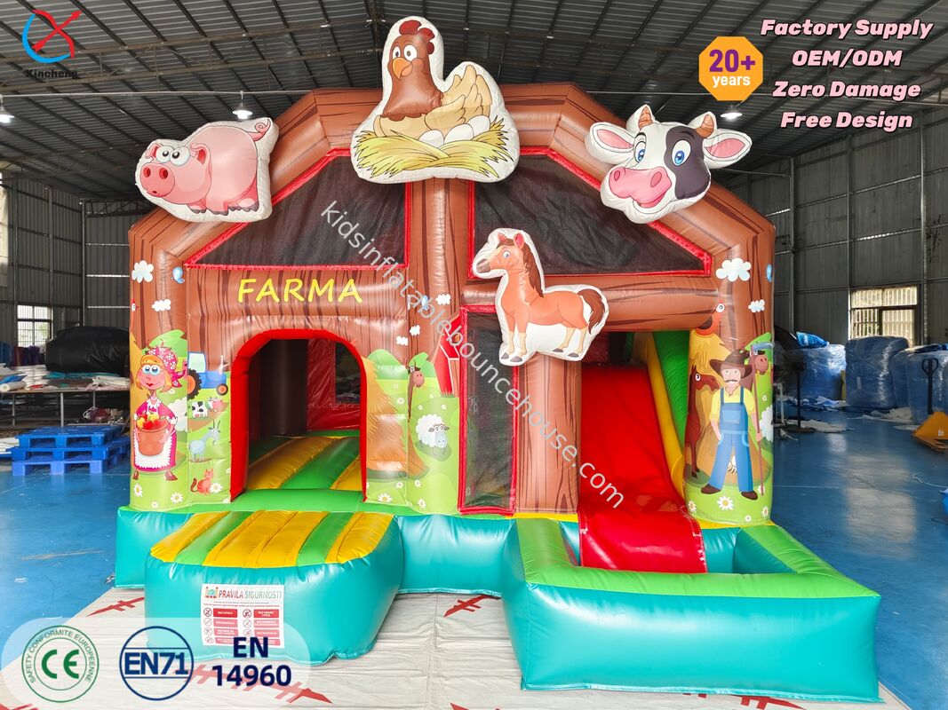Des diapositives gonflables de haute qualité sur le thème de la ferme conçues pour les entreprises de location et les événements spéciaux.Cette unité de divertissement dynamique combine des activités de saut et de glissement pour un maximum de plaisir.